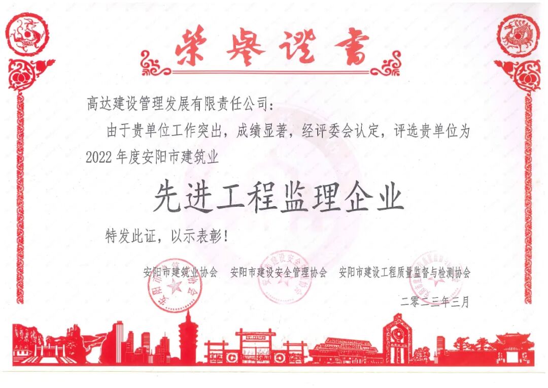 安阳市建筑业“先进工程监理企业”
