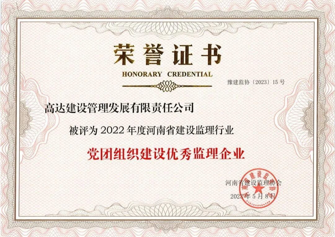 河南省“党团组织建设优秀监理企业”